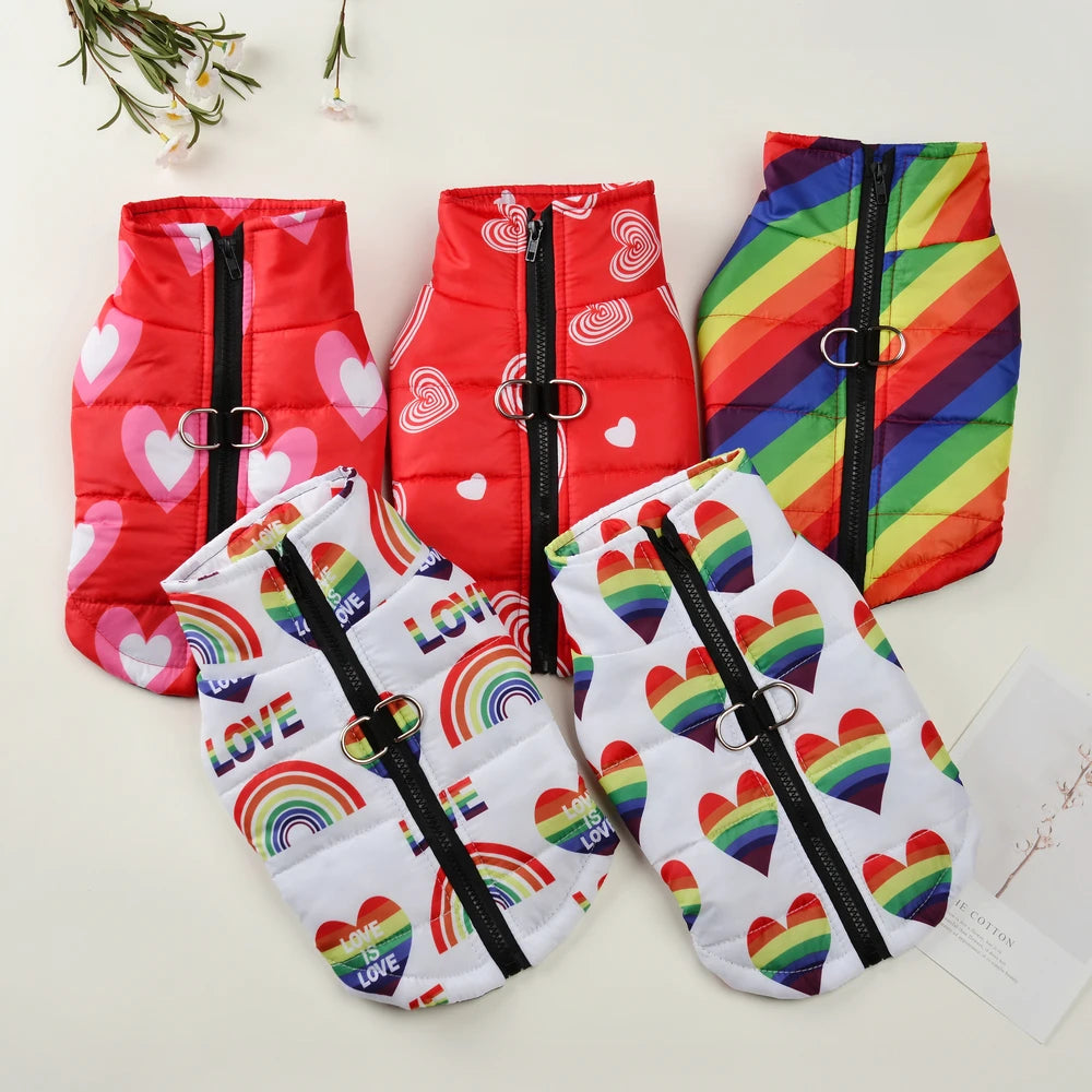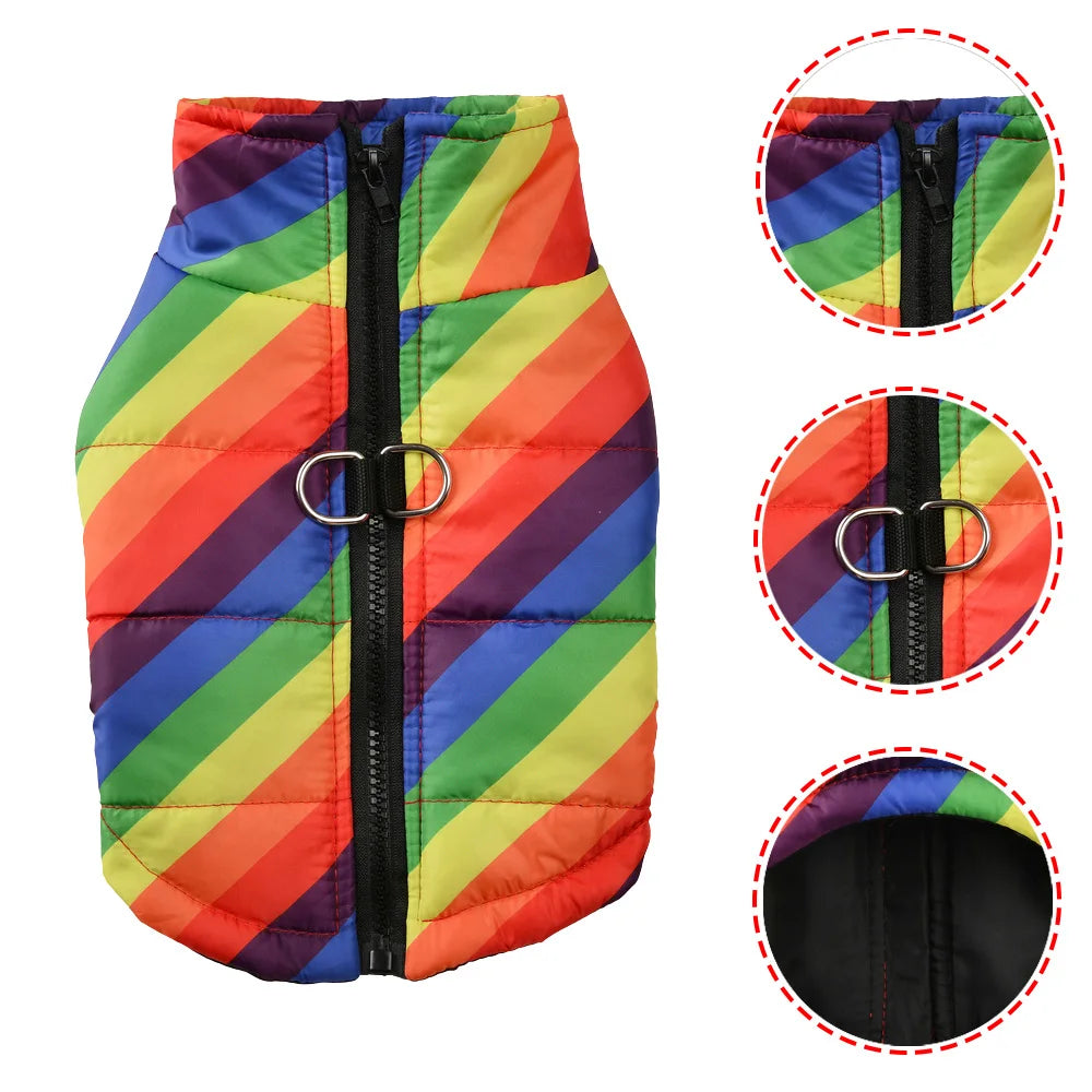 Pet Dog Jacket With D-ring: Rainbow Dog Clothes